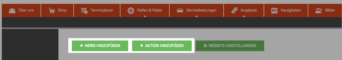 Beispiel für Buttons zum Hinzufügen von Inhalten (auf der Startseite)